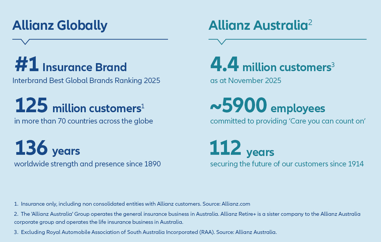 Allianz Retire+ is an Australian life company committed to simplifying retirement planning by providing reliable solutions that offer guaranteed income, protection, flexibility and control. We empower retirees to achieve financial security and peace of mind.